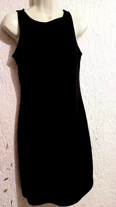 Vestido negro sin mangas, tela de algodón talla s le puede quedar a una talla m ya que la tela es strech