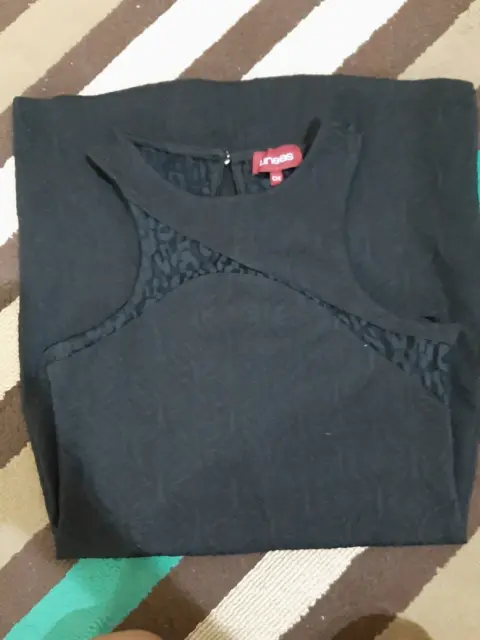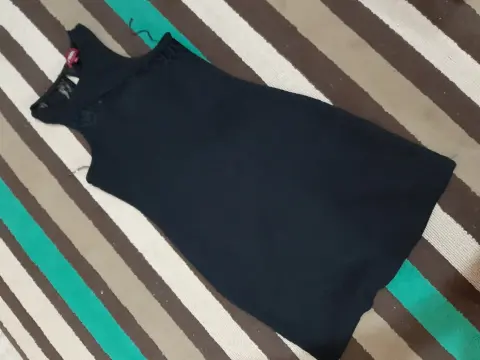 Lindo vestido negro, talla s, sin detalle, queda arriba de la rodilla y hace muy bonita cintura.