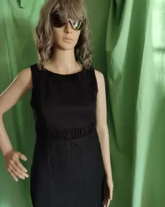 Vestido negro acinturado. Hermoso vestido negro acinturado, talla extra chica, con forro, 99 porciento lana. 1 spandex. Medidas, axila-axila 42, cintura 35, largo 86.Envío todos los días de lunes a sábado