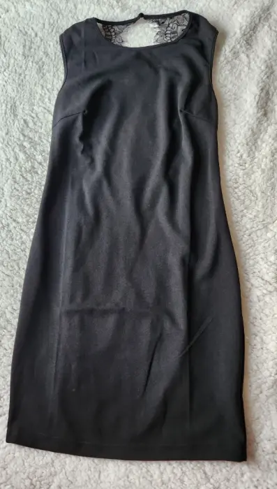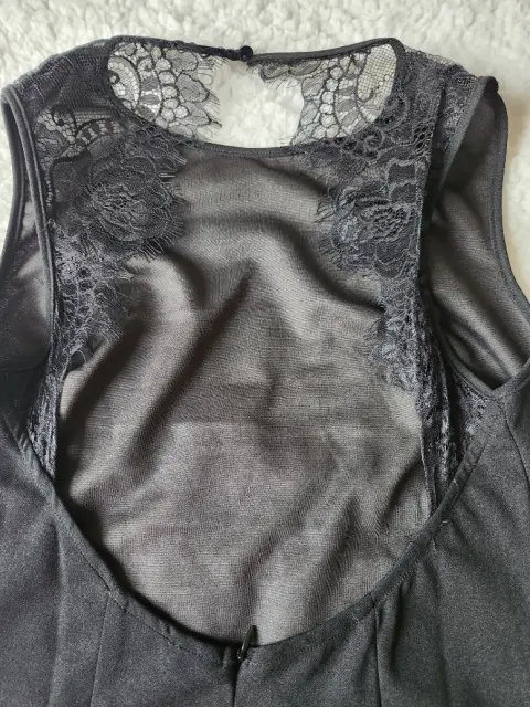 Vestido Negro Casual. Vestido negro con encaje en la espalda y escite pronunciado sexy, entallado, para ocasiones casuales o formales.