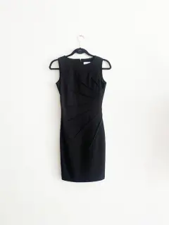 Vestido negro CK. Precioso vestido ideal para la oficina de la marca Calvin Klein ajustableMEDIDAS EN PLANO:Hombro a hombro: 40 cmCintura: 32 cmCaderas: 40 cmLargo: 90 cmNo tiene detalles