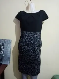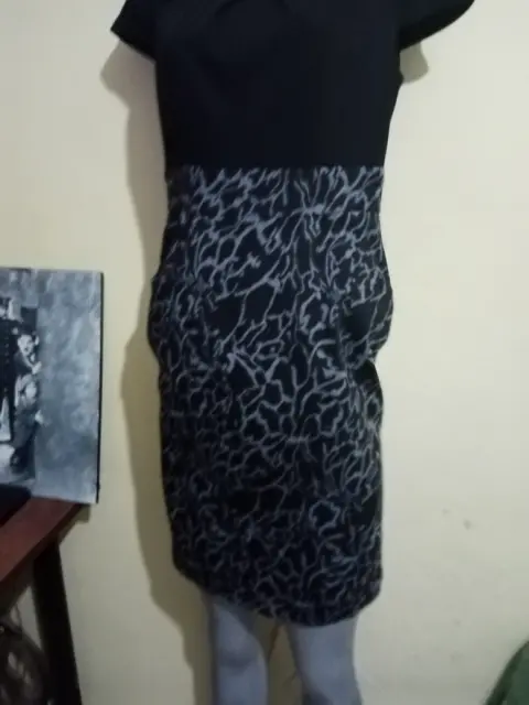 Vestido negro con animal print gris talla S. Vestido negro con gris animal print, talla S, nuevo sin etiqueta en excelentes condiciones arma el cuerpo super bonito, queda a, media rodilla