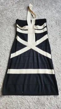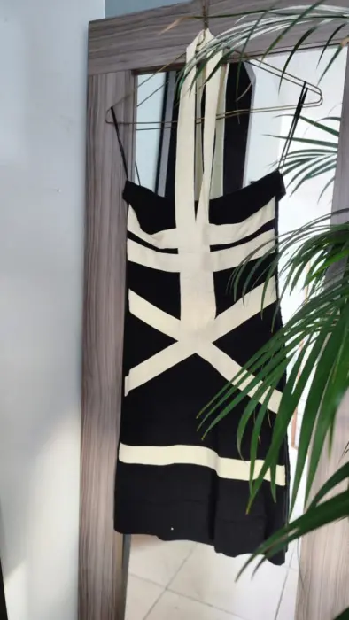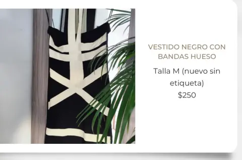Vestido elástico negro con bandas color hueso, la tela estira talla M