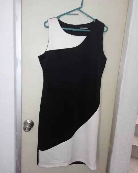 Vestido negro con blanco. Vestido negro con blanco, sin mangas, con cierre atrás