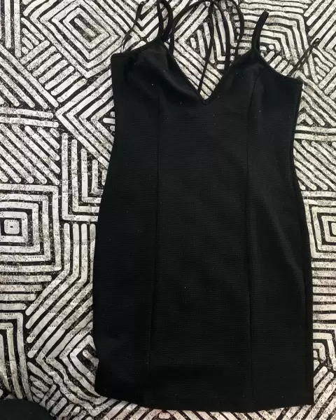 Vestido negro con brillos. Hermoso vestido negro talla m Largo 80 cm, pecho 74cm, cadera 84cm, estira bastante y no seTransparenta