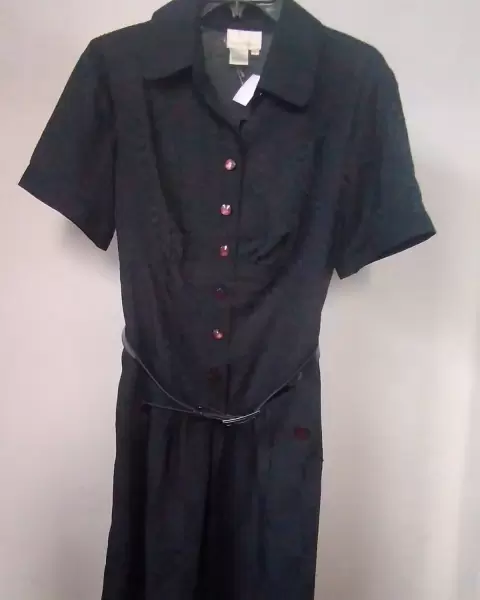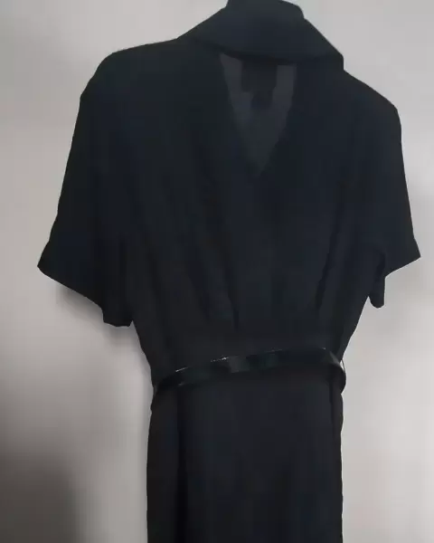Bonito vestido negro casual con cinto. Luce mucho. Dice talla 8 pero da más a una 6 porque no estira. T gustará muchisimo.