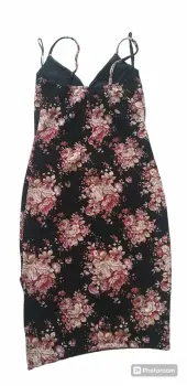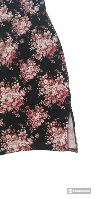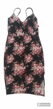Vestido negro con flores, hermoso diseño que entalla tu figura, con un toque coqueto en la pierna que deja lucir tu encanto. Esta en perfecto estado, solo se usó una ocacion.Es marca zoy.