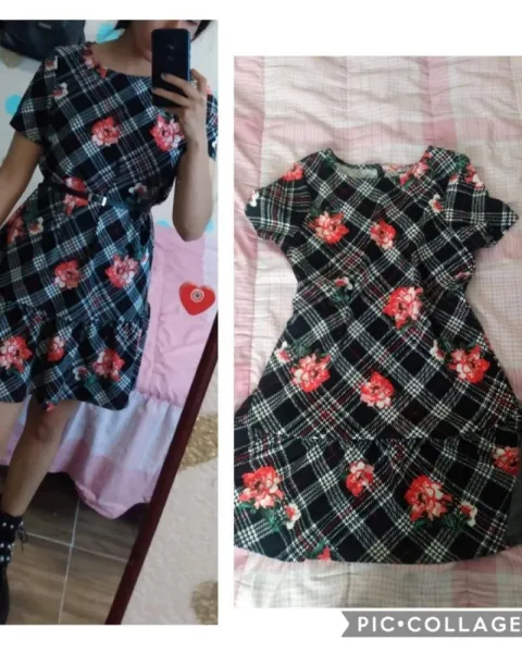 Vestido negro con flores en talla M, NO incluye cinturón.