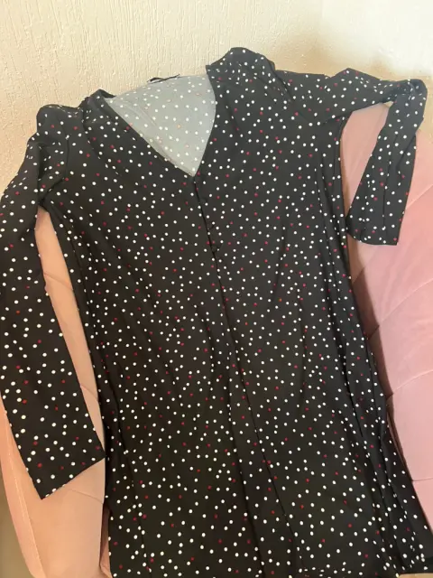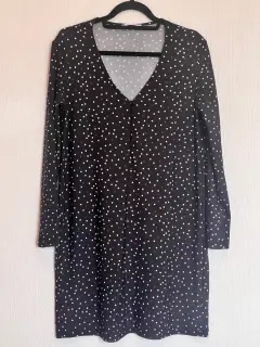 Vestido negro con lunares blancos & rojos de manga larga perfecto para estar cómoda y casual. 🫰🏼✨