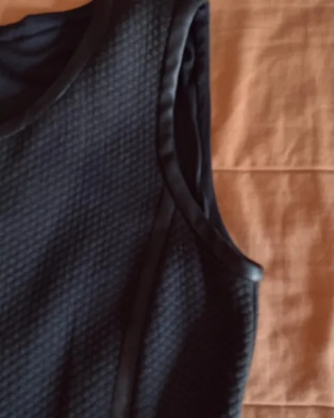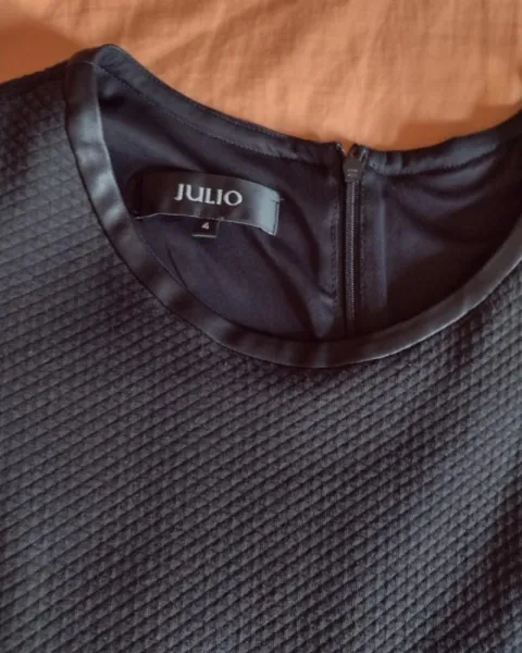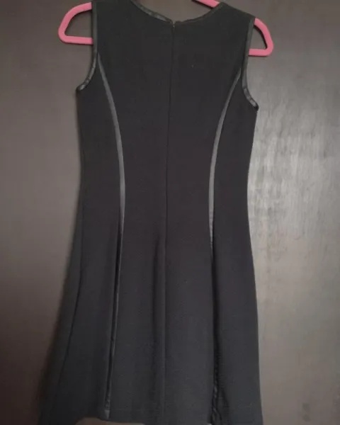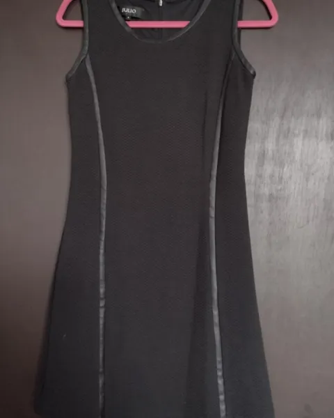 Vestido negro con detalles de piel . Marca Julio. Tela stretch con forro. Muy cómodo. Corto sutil. Talla 4.