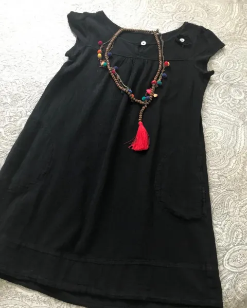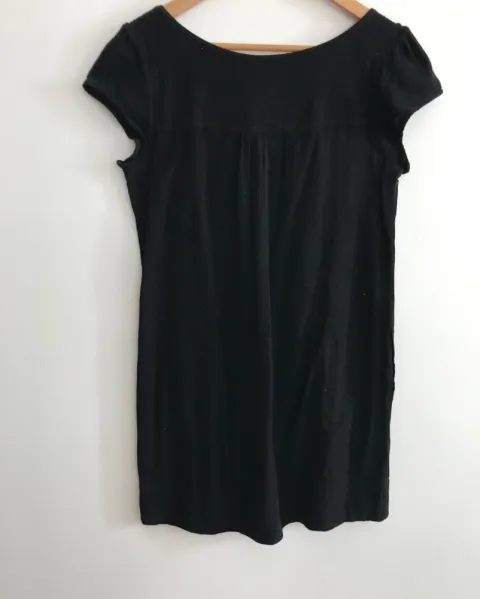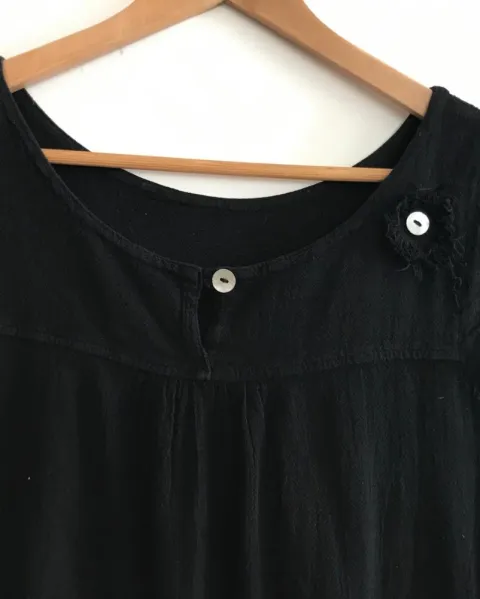 VESTIDO NEGRO CORTE BATITA. Algodón 100%, muy cómodo y fresco, lindo corte batita, bolsillos ocultos a los lados. Mide de axila a axila 50cm, largo 80cm.