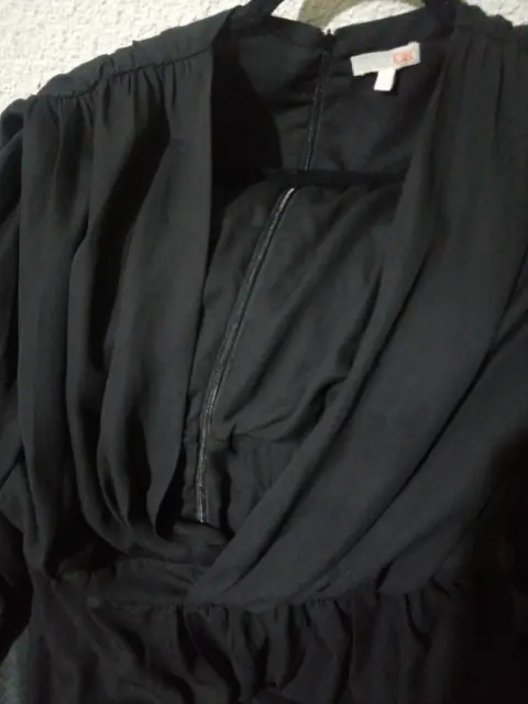Hermoso vestido negro corto, cierre en espalda, escote frente, maga larga de puño, usado una sola vez, excelentes condiciones.