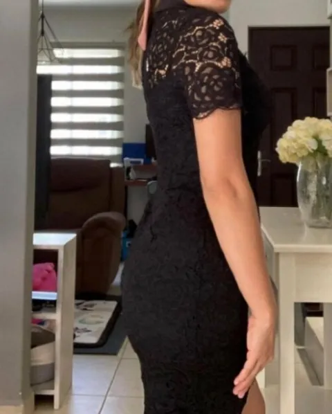 Vestido de encaje semi nuevo.Es entallado y llega arriba de la rodilla En buen estado, puesto únicamente una vez para un evento.Tiene forro en la parte de adentro en las imágenes se logra ver hasta donde llega