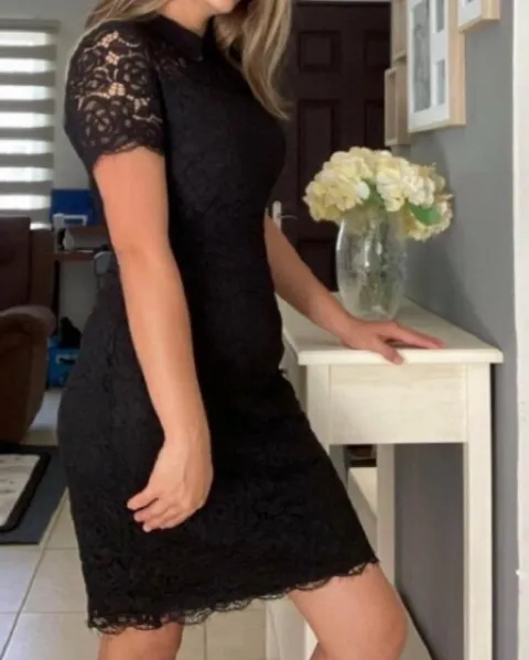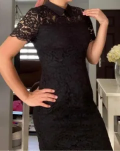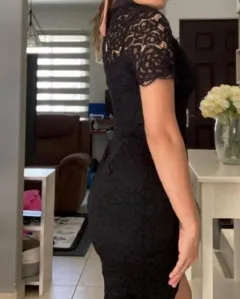 Vestido negro de encaje. Vestido de encaje semi nuevo.Es entallado y llega arriba de la rodilla En buen estado, puesto únicamente una vez para un evento.Tiene forro en la parte de adentro en las imágenes se logra ver hasta donde llega