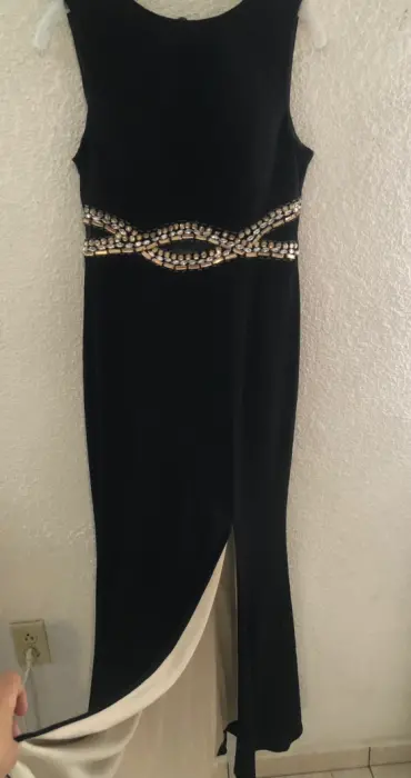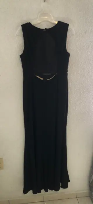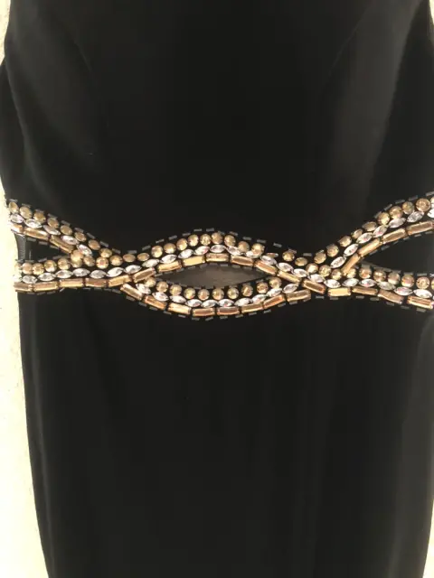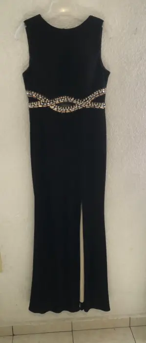 Vestido negro de noche. Vestido negro de noche con forro y copas.Abertura de lado izquierdo.Detalle en cintura de pedrería