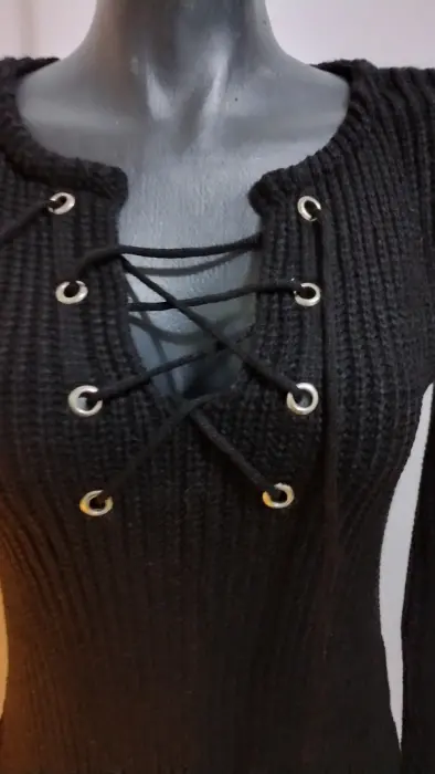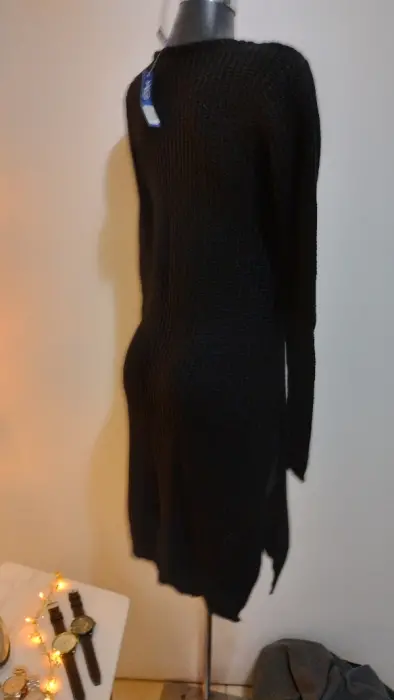 Vestido Negro de punto (maquina) NuevoCon aplicación en la parte frontal y listón del mismo materialAbierto de los lados de la parte baja
