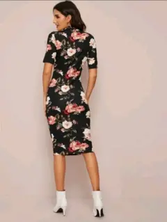 Vestido Estilo lápiz con estampado de flores color negro marca Shein,la tela es muy suavecita , no estira mucho y no se trasparenta, no tiene cierreTalla ChicaMedidas : hombro 37.5 cm, pecho 82.5 cm, contorno cintura 68 cm, contorno caderas 83 cm, largo 108 cm, largo manga 25.5 cm.❣️NO ACEPTO OFERTAS