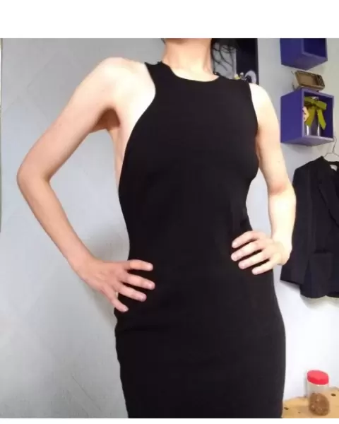 Vestido negro de ZARA abertura espalda. Talla: M 28 Busto:36x2 Largo:79.5Mini cierre en la parte de arriba.Sexy abertura en costado y espalda. Me lo regaló mi hermana y sí, está hermoso, pero para mi gusto me queda algo corto, soy muy alta 🤭 La verdad no me atrevo a usarlo 🙃. Ignoro el precio.