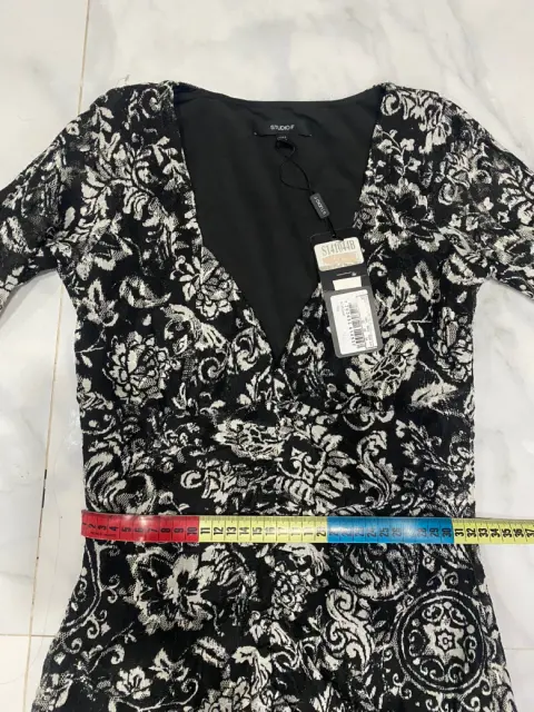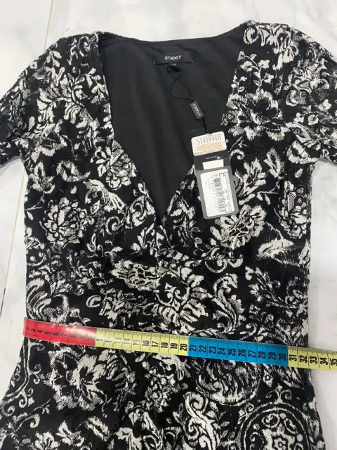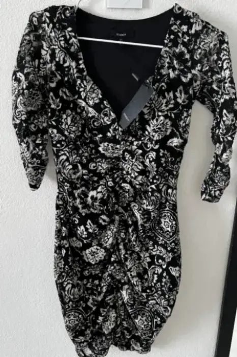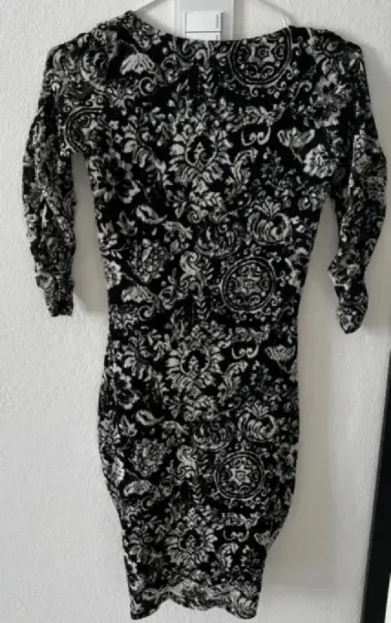 Vestido negro encaje. Vestido negro elegante con manga de 3/4