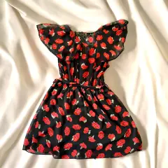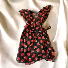 Vestido negro floreado. Vestido casual cuello V, talla 30 negro con flores rojas, súper fresco para el clima caluroso