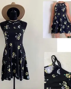 Vestido negro flores amarillas. Se usó dos veces, yo soy M y me quedó un poquito justo, la tela estira …