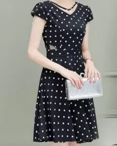 Lindo vestido corto, marca Forever 21, talla M, color negro con lunares blancos, esxcelente estado, tela fresca y a la moda.Foto de modelo solo de muestra.