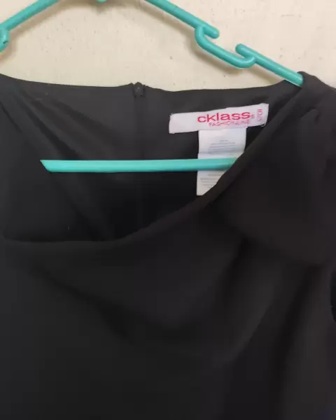Vestido negro formal. Vestido nuevo sin etiqueta estuvo guardado nadie lo uso está en buenas condiciones nuevo talla chica con un moño arriba del hombro derecho con cierre el cierre le sirve el color negro está bien está perfecto está elegante para una comida