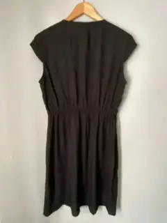 Bonito vestido negro, tiene cierre en la parte de enfrente, y elástico en la parte de atrás en la cintura, la tela es ligeraMedidas aproximadas: De axila a axila 49 cm Cintura 38 cm sin estirar, 48 cm si se estira Largo 96 cm