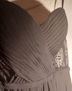 Largo estraple, cierre en la parte trasera.Elegante plizado en busto talla M.