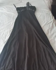 Vestido negro largo de fiesta. Vestido de fiesta negro talla chica, un solo tirante con detalles de lentejuelas que no se cae al momento de llevar a la tintorería. Tiene muy buena caída y da forma al cuerpo