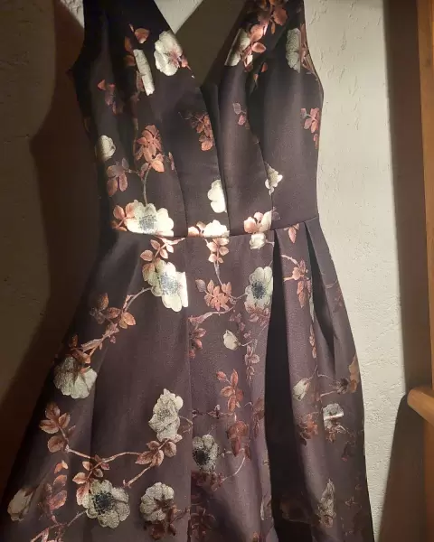 Vestido negro largo y corto por delante. Hermoso vestido negro con flores rose gold. De dos tirantes y cierre trasero.largo por atrás con vuelo hermosoy corto por delante.