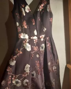 Hermoso vestido negro con flores rose gold. De dos tirantes y cierre trasero.largo por atrás con vuelo hermosoy corto por delante.