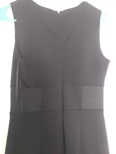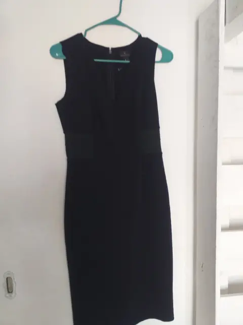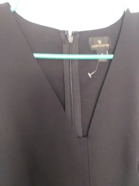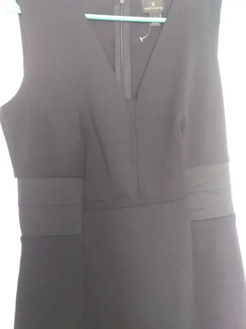 Vestido negro marca worthington. Vestido negro,liso sin manga con aplicación de resorte en la cintura,cuello v,con un largo abajo de la rodilla