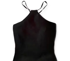 Vestido negro pegadito espalda abierta. Vestido negro pegadito con cuello halter, espalda descubierta con broches dorados, tejido de punto, no se transparenta para nada la tela está de súper buena calidad te hace una figura muy bonita, súper bien para fiesta