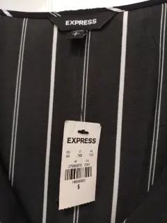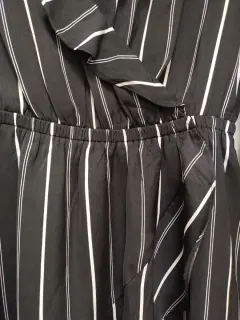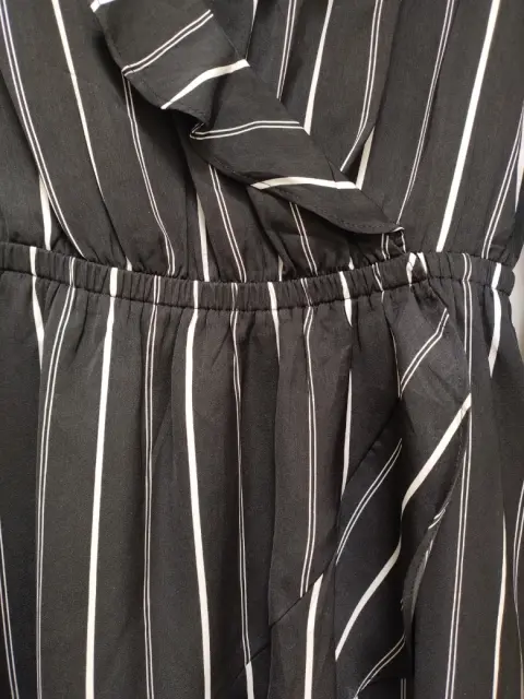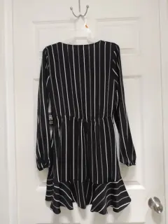 Vestido negro rayas blancas y escote. Súper fresco, talla S, largo arriba de la rodilla, manga larga