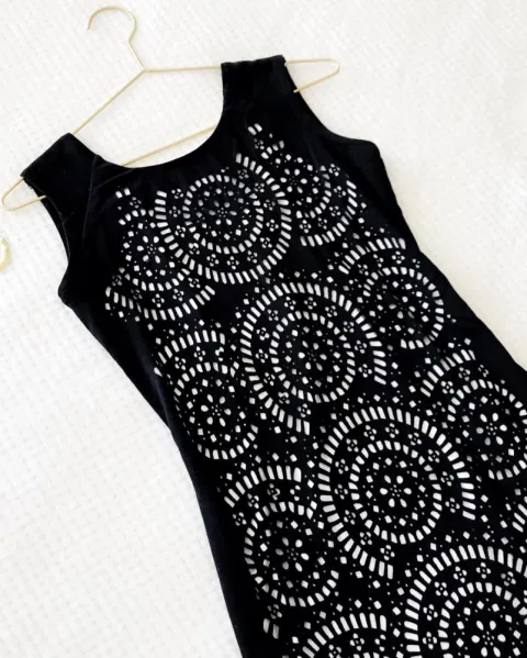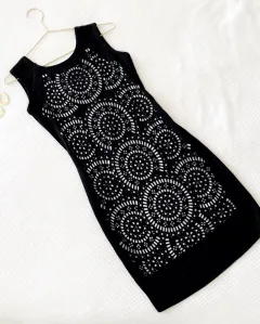 Vestido negro stop. En perfeto estado!!! No tiene ningum detalle, la tela se estira y se ajusta al cuerpo, es talla mediana pero la chava de la foto es talla S y le quedo perfecto, tambien le queda a talla grande si no tiene mucho busto