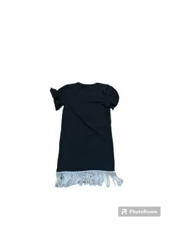 VESTIDO NEGRO TALLA 8/9. VESTIDO CON BARBAS, TALA 8/9, MARCA LITTLE STAR,COLOR NEGRO EN BUEN ESTADO, ALGUNAS APLICACIONES YA NO LAS TIENE, SE VE EN LAS FOTOS, MANGA CORTA CON ONDAS,MIDE DE HOMBRO A HOMBRO 32.5 CM, DE AXILA A AXILA 39 CM, DE LARGO 68 CM SIN CONTAR LAS BARBAS