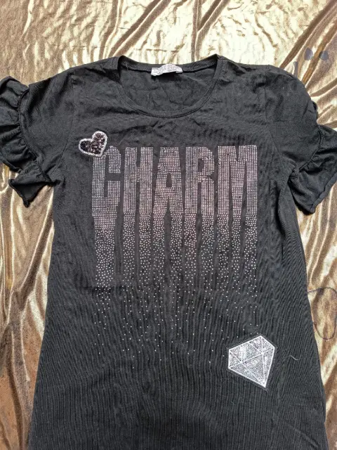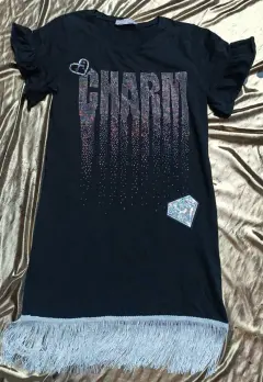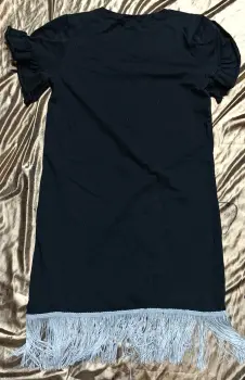 VESTIDO CON BARBAS, TALA 8/9, MARCA LITTLE STAR,COLOR NEGRO EN BUEN ESTADO, ALGUNAS APLICACIONES YA NO LAS TIENE, SE VE EN LAS FOTOS, MANGA CORTA CON ONDAS,MIDE DE HOMBRO A HOMBRO 32.5 CM, DE AXILA A AXILA 39 CM, DE LARGO 68 CM SIN CONTAR LAS BARBAS