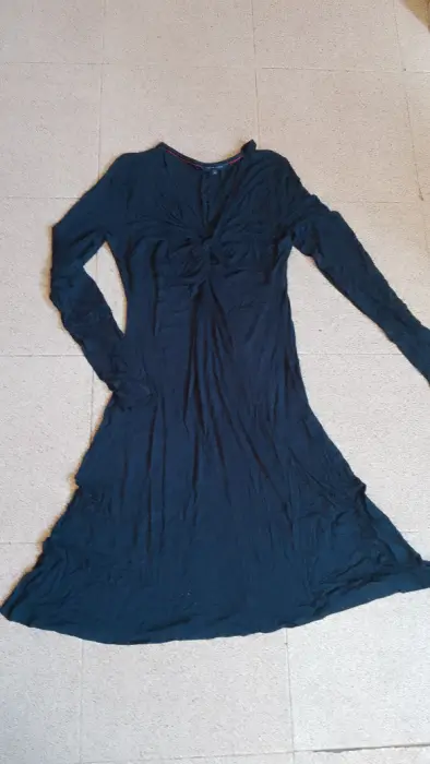 Vestido negro. Talla M Tommy. Vestido negro de tela Spandex. Cruzado al frente. Manga larga. Talla M