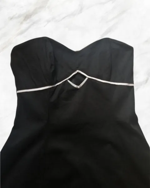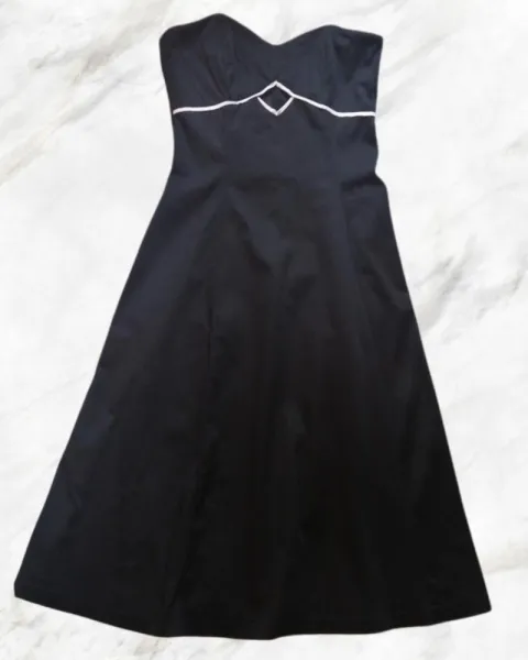 Hermoso vestido color negro con detalles en color blanco, marca americana WHITE HOUSE BLACK MARKET, muy poco uso pero se ve como nuevo,Medidas:De axila-axila 40cmCintira 36.5cmLargo desde la copa 96cm.