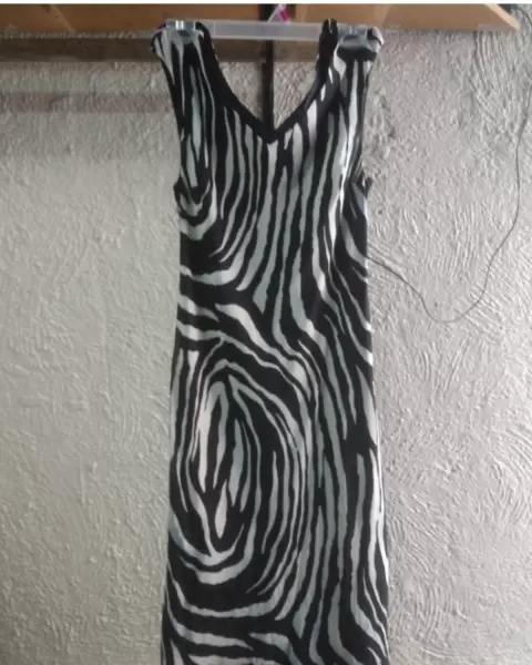 Vestido negro y blanco. Vestido cuello en v suelto tiene unos detalles en la parte de abajo está un poco manchado
