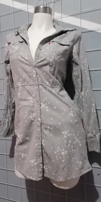 Vestido niña. Manga larga tela con estampado de estrella no estira bolsas a los costados