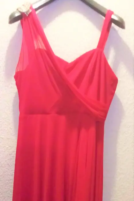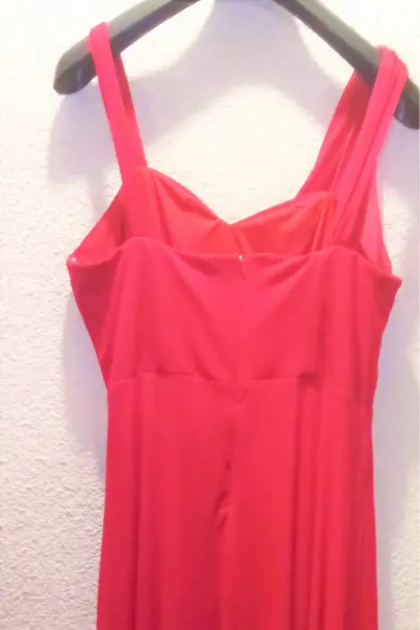 VESTIDO NOCHE LARGO FUCSIA EG. VESTIDO NOCHE LARGO FUCSIA EXTRA GRANDE, A LA RODILLA AL FRENTE Y COLA DE TUL AL TOBILLO ATRAS