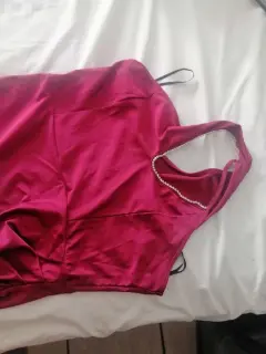 Vestido de shein en color vino, con pierna descubierta y hombro, la talla es L