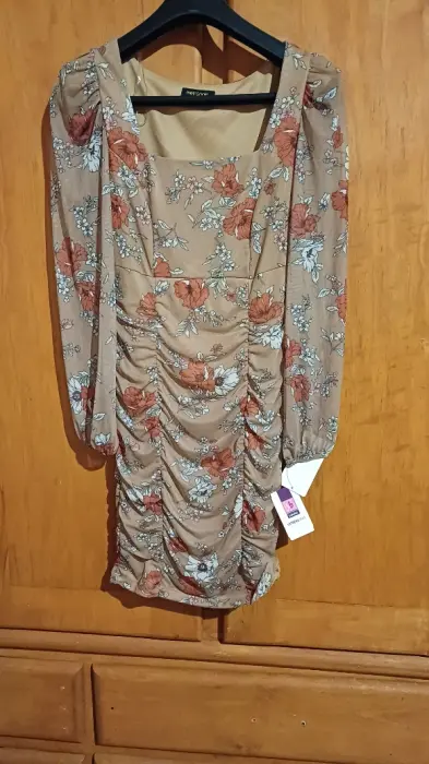 Vestido nuevo. Talla chica de licra ajustado arriba de la rodilla con etiqueta