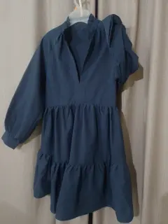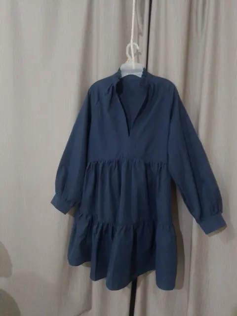 Vestido nuevo azul marino. Es un vestido manga larga con botón en el puño, el largo es de 98 cms, circunferencia de cintura 102 cms.