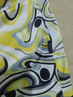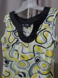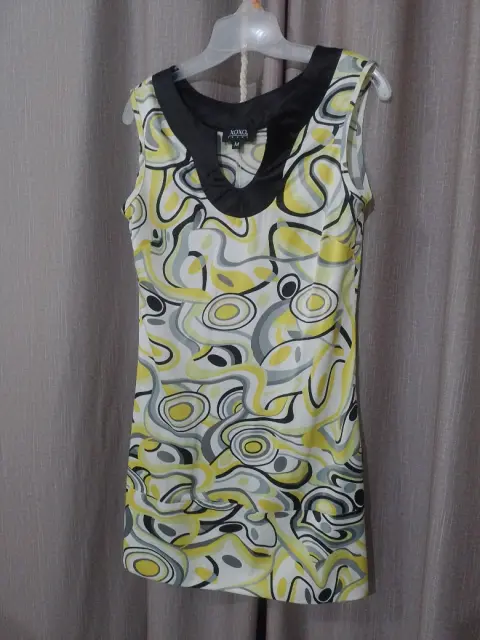Vestido cuello negro de tela con excelente caída, sin manga, largo de 85 cms.Es talla mediana