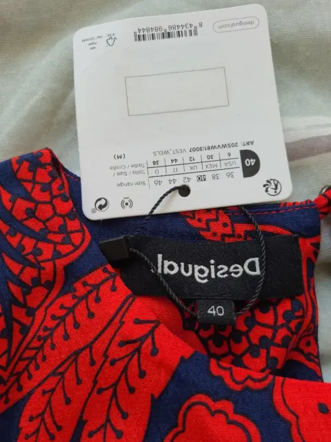 Vestido nuevo Desigual primaveral. Vestido súper fresco y ligero sin manga. La tela no estira, medidas hombro 30 cm, pecho 80 cm, cintura 72 cm, cadera 86 cm. Largo arriba de la rodilla, la talla equivale a 30 en México.