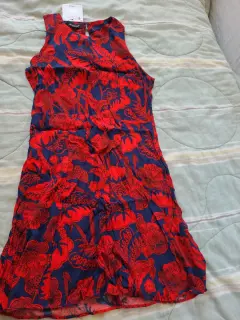 Vestido súper fresco y ligero sin manga. La tela no estira, medidas hombro 30 cm, pecho 80 cm, cintura 72 cm, cadera 86 cm. Largo arriba de la rodilla, la talla equivale a 30 en México.