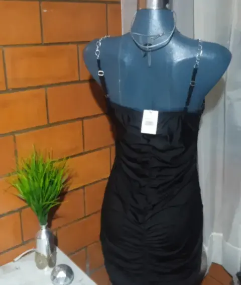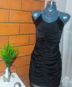 Vestido de tendencia nuevo, es spandex, unitalla S y M , color negro, diseñó corrugado, tirantes de metal ,tela licra , muy fhasion !!